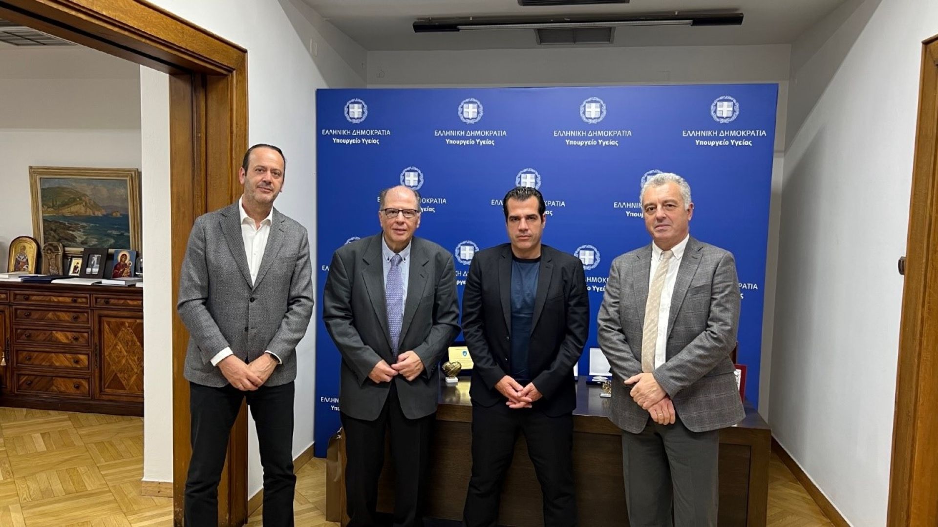 Στις 4 Νοεμβρίου τα μέλη του ΔΣ του Συνδέσμου Κοι Θεοχάρης Κολοβέας Πρόεδρος του ΔΣ, Νικόλαος Λινάρδος Αντιπρόεδρος του ΔΣ και Μανώλης Τετώρος Γενικός Γραμματέας του ΔΣ, συναντήθηκαν με τον Υπουργό Υγείας Κο Θάνο Πλεύρη. Είχαν την ευκαιρία να παρουσιάσουν τις θέσεις του Συνδέσμου για τα βασικά θέματα που απασχολούν τα μέλη του, αλλά και γενικότερα τις απόψεις τους για το πως θα υπάρξει γρήγορη βελτίωση και μεγαλύτερη αποτελεσματικότητα στη λειτουργία των Υπηρεσιών που σχετίζονται με τον κλάδο, συμβάλλοντας έτσι και στο βασικότερο σκοπό της προάσπισης της Δημόσιας Υγείας και προστασίας των καταναλωτών.