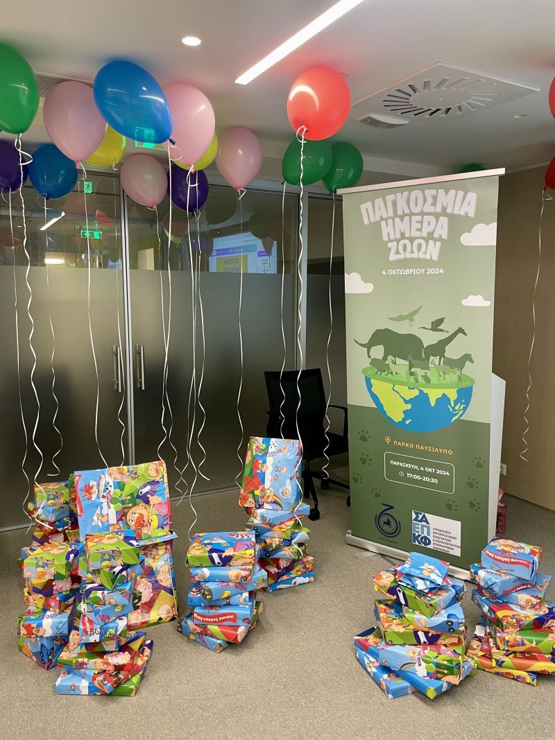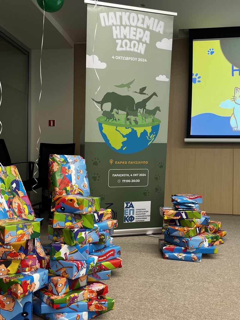 Ο Σύνδεσμος Αντιπροσώπων, Εισαγωγέων & Παρασκευαστών Κτηνιατρικών Φαρμάκων στα πλαίσια της Κοινωνικής του Ευθύνης αλλά και της βασικής του κατεύθυνσης να ενισχύσει την Κτηνιατρική εκπαίδευση, την έρευνα και το Κτηνιατρικό επάγγελμα στη χώρα μας, θέλει να είναι βασικός συμπαραστάτης και των φοιτητών Κτηνιατρικής, σε σχετικές δράσεις που αναλαμβάνουν στα πλαίσια ευαισθητοποίησης του κοινού σε θέματα ευζωίας και ζώων, αλλά και στην καλύτερη γνωριμία του κοινού με τη Κτηνιατρική Επιστήμη. Έτσι λοιπόν ενισχύσαμε τις πολύ ωραίες πρωτοβουλίες των Φοιτητών Κτηνιατρικής, που περιελάμβαναν την εξασφάλιση, κατόπιν κλήρωσης, 10 μαθημάτων ιππασίας στην λίμνη Πλαστήρα, σε μαθητές Δημοτικών και Γυμνασίων της πόλης της Καρδίτσας, αμέσως μετά την ενημέρωσή τους για την εν λόγω Παγκόσμια Ημέρα, την δημιουργία ενημερωτικού banner με το σχέδιο του Συλλόγου για την Παγκόσμια Ημέρα Ζώων 2024, που στήθηκε στον χώρο της πλατείας, καθώς και την εξασφάλιση και αγορά δώρων και παιχνιδιών για τα παιδιά που φιλοξενούνται στον ξενώνα του Συλλόγου Φίλων Παιδιών με Καρκίνο ΕΛΠΙΔΑ.